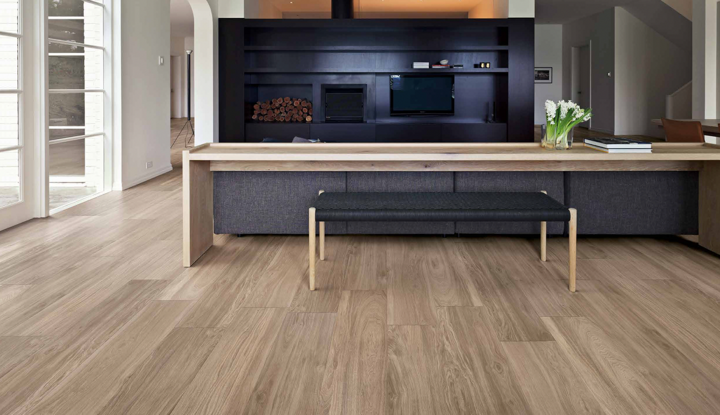 Deck is a wood look porcelain collection resembling an oak wood with a classic appearance. The colors range from light to dark with a slightly rough texture making these tiles a simple contemporary choice with a natural feel. This collection has to look of real wood but the durability of a porcelain allowing it to be installed in any setting as it is waterproof, stain and scratch-resistant, and easy to maintain.